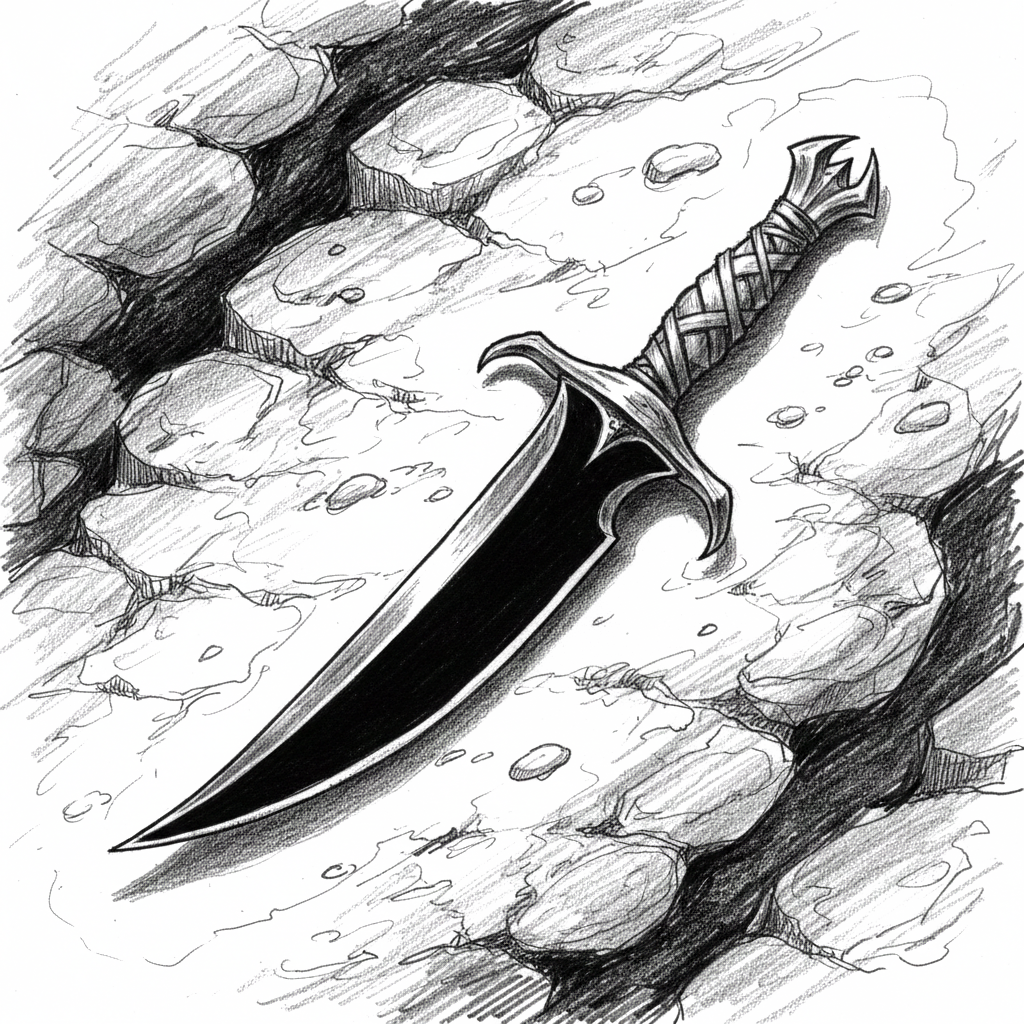 +1d6 damage when striking from concealment or surprise. Permanent. Curved dagger with polished obsidian blade that reflects no light.