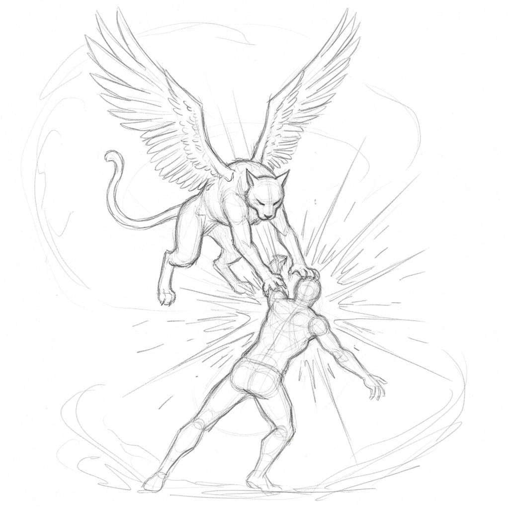 A winged cat that drops like thunder, pinning prey with a single shocking impact.