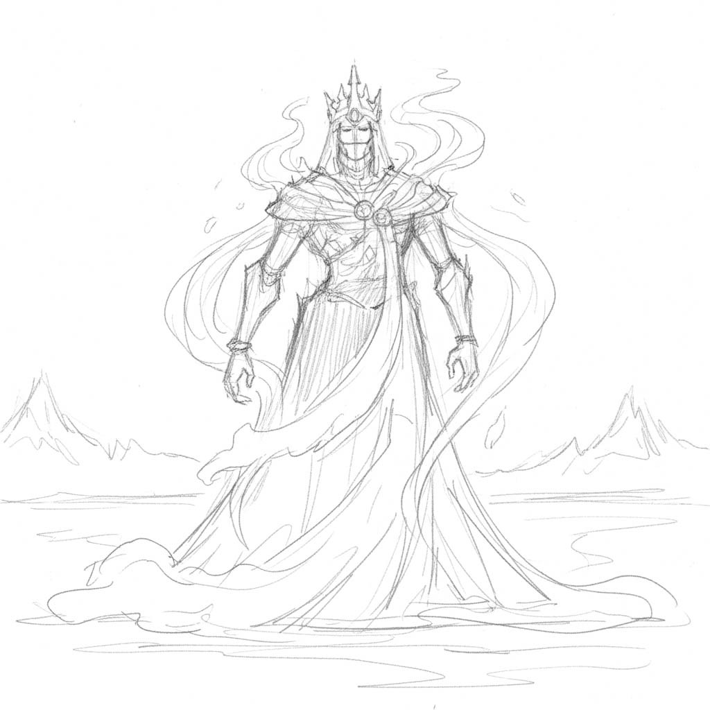 A regal figure of banked coals and drifting ash who rules any blaze it walks through.