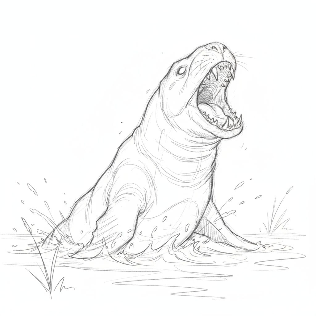 A hulking predator of murky waters, shaped like a seal until its jaw splits too wide. It lurks just below the surface, drawn to splashing and noise, then bursts upward in a whirl of spray and teeth. The Bunyip drags its prey beneath and waits for the water to still before feeding.