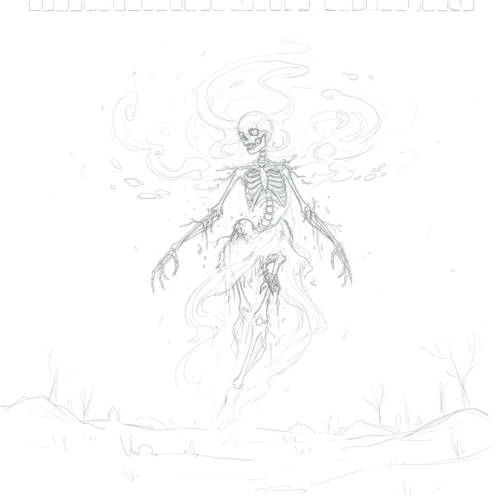 A spirit-witch born from burial mounds and bound to the chill earth. Her form drifts like grave smoke, bones half-shown through drifting soil, voice carried on the breath of the dead. The air grows cold where she lingers, and her whispers dig under the skin, freezing courage before the body.