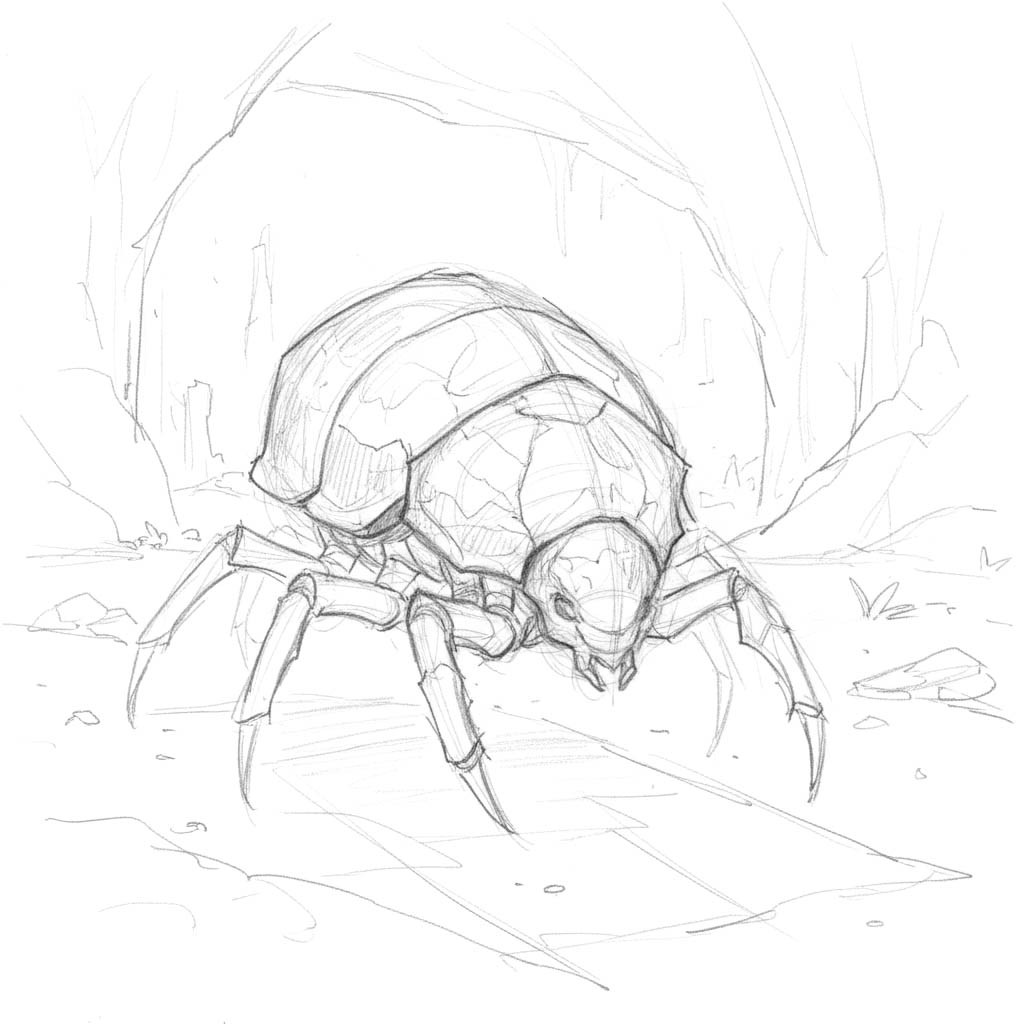 These armored insects thrive in caverns and ruins steeped in darkness. Their shells gleam like oiled obsidian, and when they charge, the impact sounds like stone cracking under pressure. Ebon Beetles rarely fight head-on - they stalk the edges of light, ramming from the dark until their prey collapses from shock or fear. Even torchlight struggles to reflect off their carapaces.