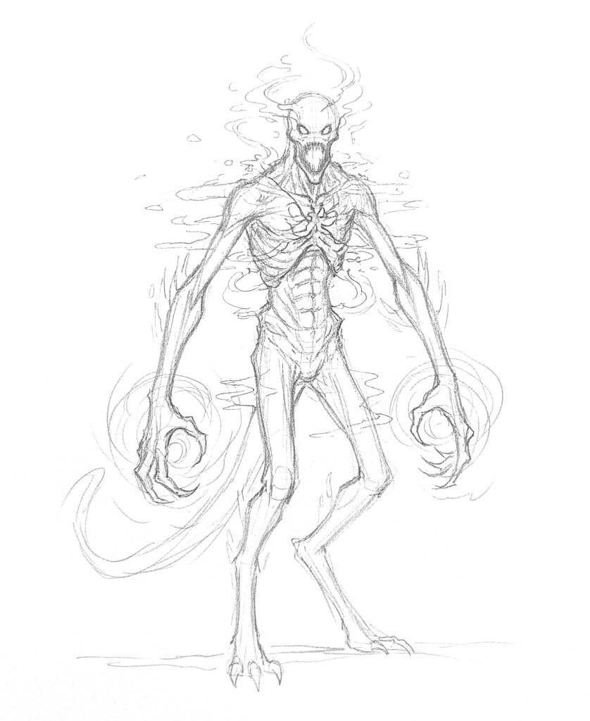 Twelve-foot tall shadowy fiends that seem to flicker between dimensions, their forms constantly shifting between solid and ethereal. These stalkers embody hunger and consumption, feeding on the life force of their victims through devastating Entropic strikes. They move with predatory grace, flickering in and out of sight as they close in on prey.