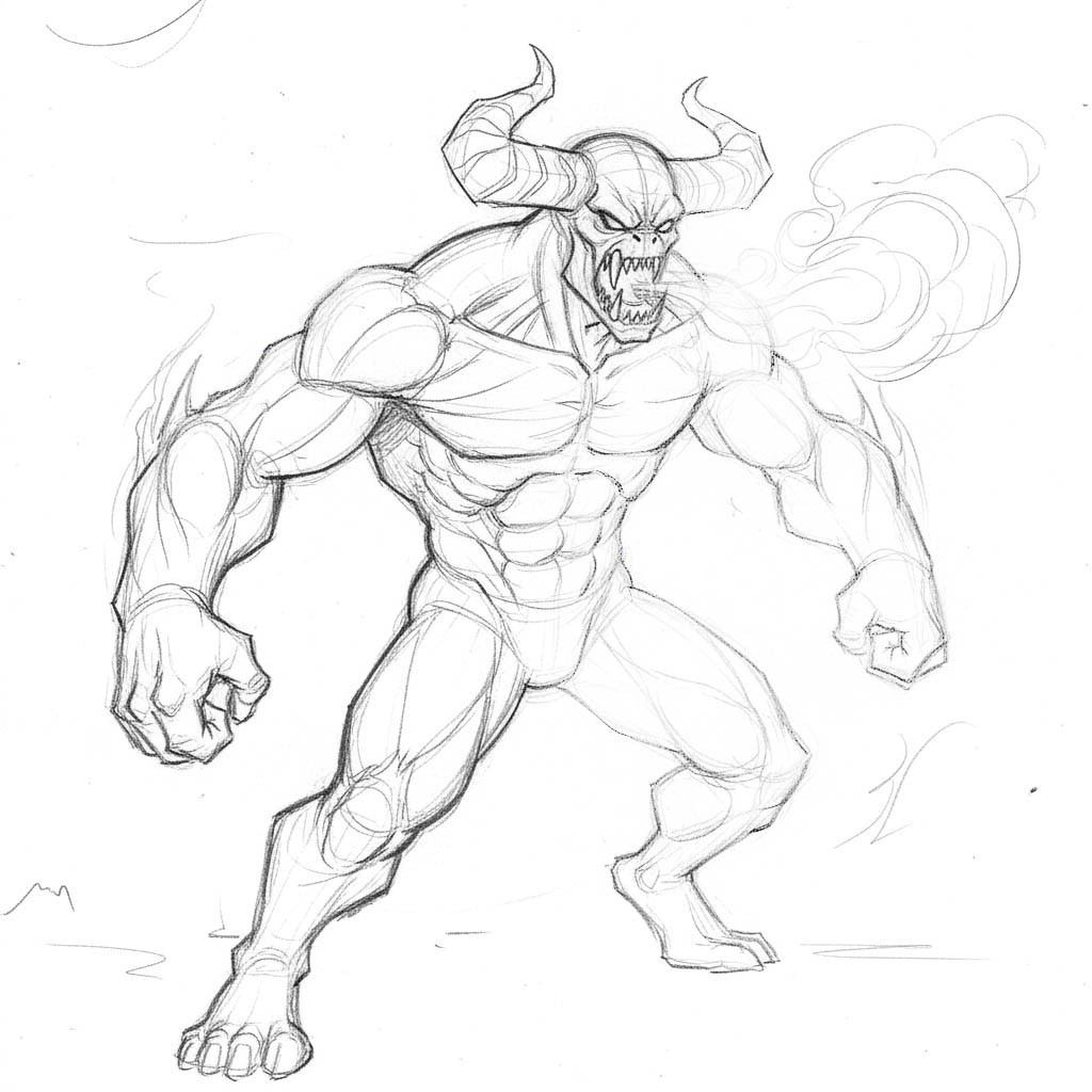 Towering and muscular, the Greed Aspect is wrapped in corded flesh like iron bands, with crimson skin, ridged horns, and rows of jagged teeth that split its snarling maw. This embodiment of avarice rampages through treasure hoards and strongholds alike, crushing anything between it and wealth. It attacks with brute force and dread breath that clouds the minds of even seasoned warriors. Radiant energy is the only thing known to halt its relentless regeneration.