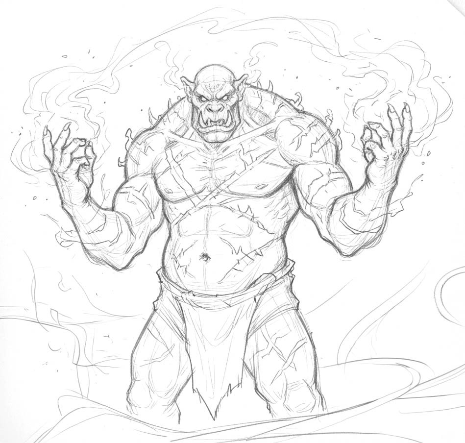 Huge, dim-witted brutes that fight for food, coin, or whoever shouts the loudest. Their skin is thick and scarred, their weapons crude clubs made from trees or beams. They live in filthy camps that stink of boiled leather and old meat, arguing until someone bleeds.