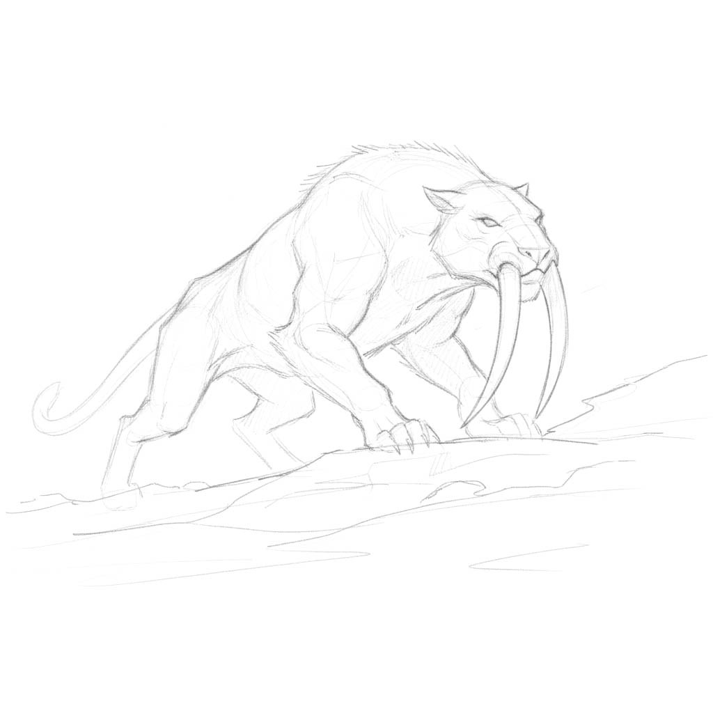 Broad-shouldered predators built for sudden violence. Their long fangs curve past the jaw like drawn blades, made to pierce thick hide in a single strike. They wait in silence along ridges and riverbanks, every muscle still until the moment of attack. When they leap, the ground shudders, and the kill is over before the echo fades.